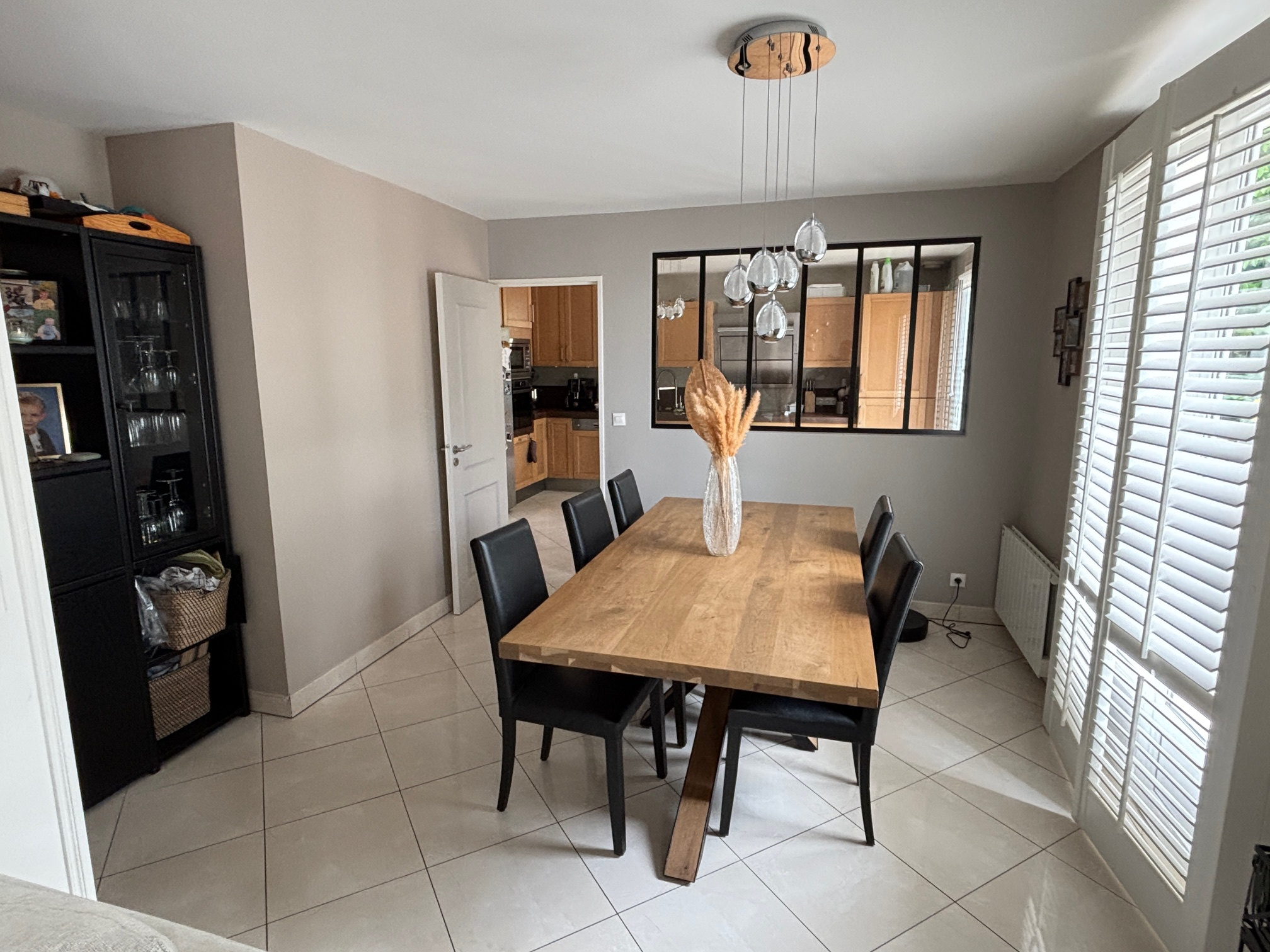 Au RDC ; une entrée cathédrale, un double séjour en triple expositions (d’Est en Ouest) ainsi qu’une cuisine familiale dinatoire séparée par une verrière contemporaine.