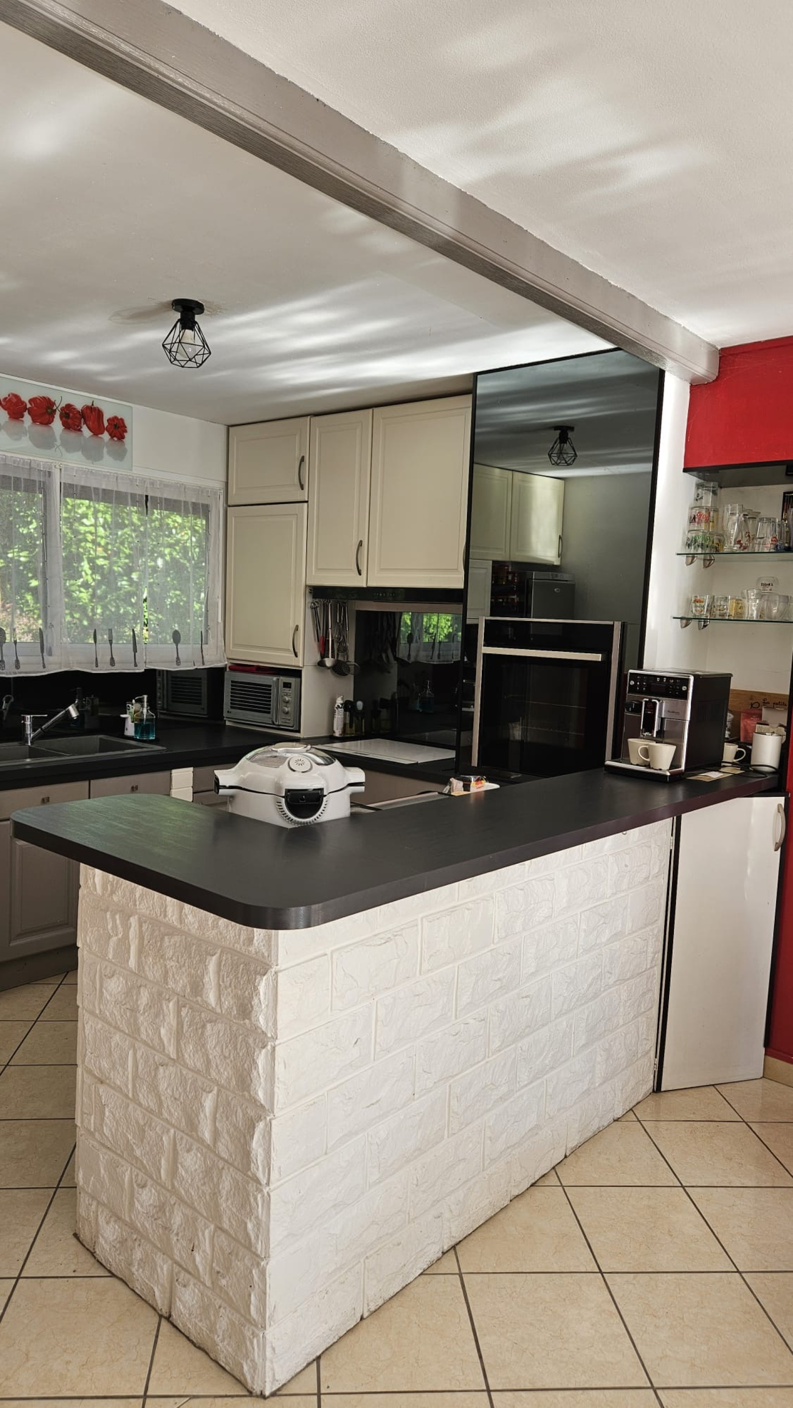 D’une cuisine ouverte, fonctionnelle et aménagée.