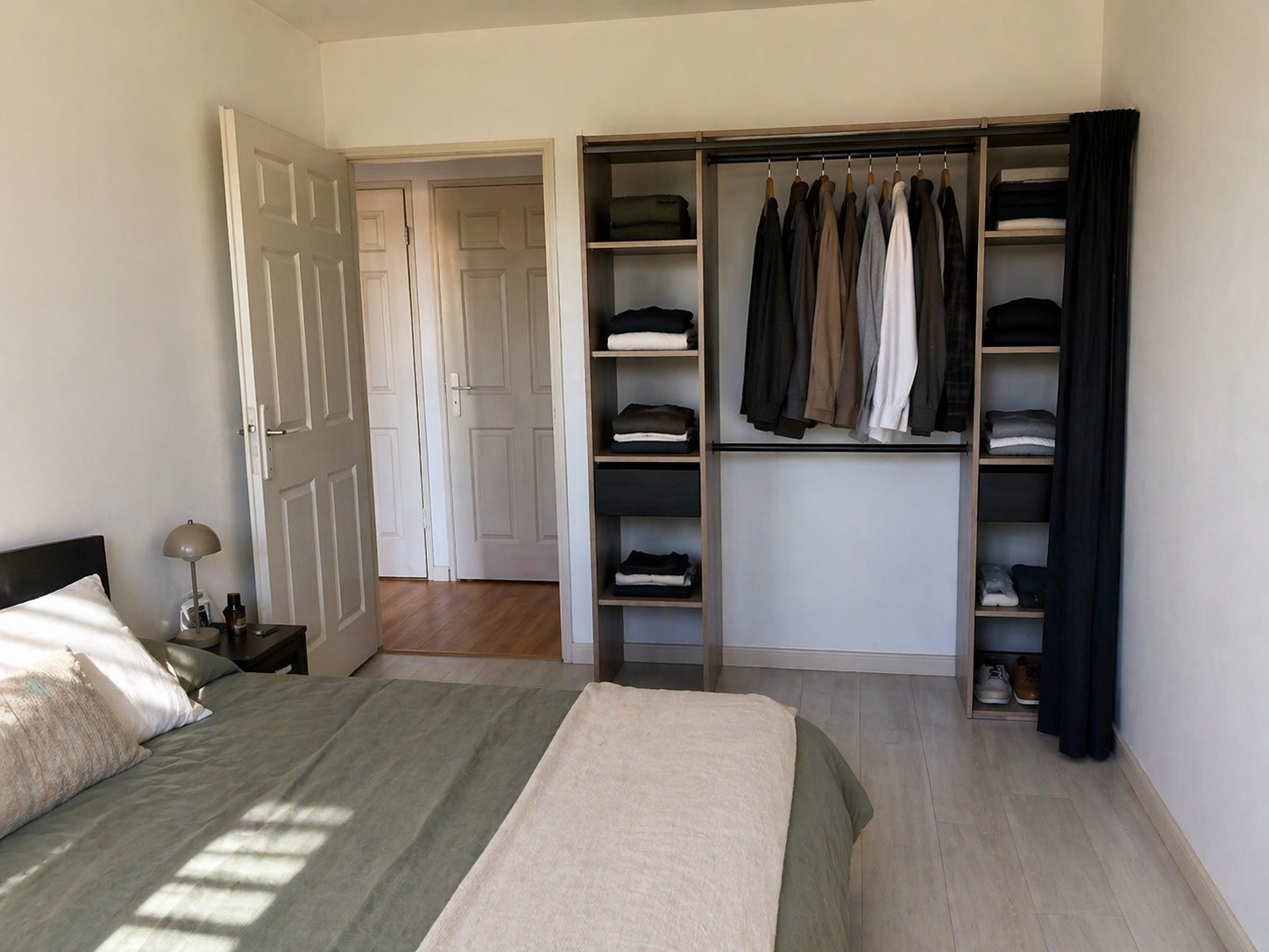 La distribution est judicieusement pensée pour le quotidien : une entrée, une cuisine fonctionnelle semi-ouverte, deux chambres avec rangements parfaitement équilibrées offrant de vrais volumes, une salle de bains confortable et des WC séparés.